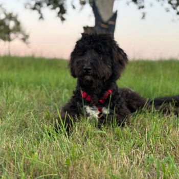 Unser lieber Simba, ein 10 Monate alter Border Collie-Königspudel-Mix, sucht ein neues Zuhause, in dem er seine Energie und Intelligenz ausleben kann.